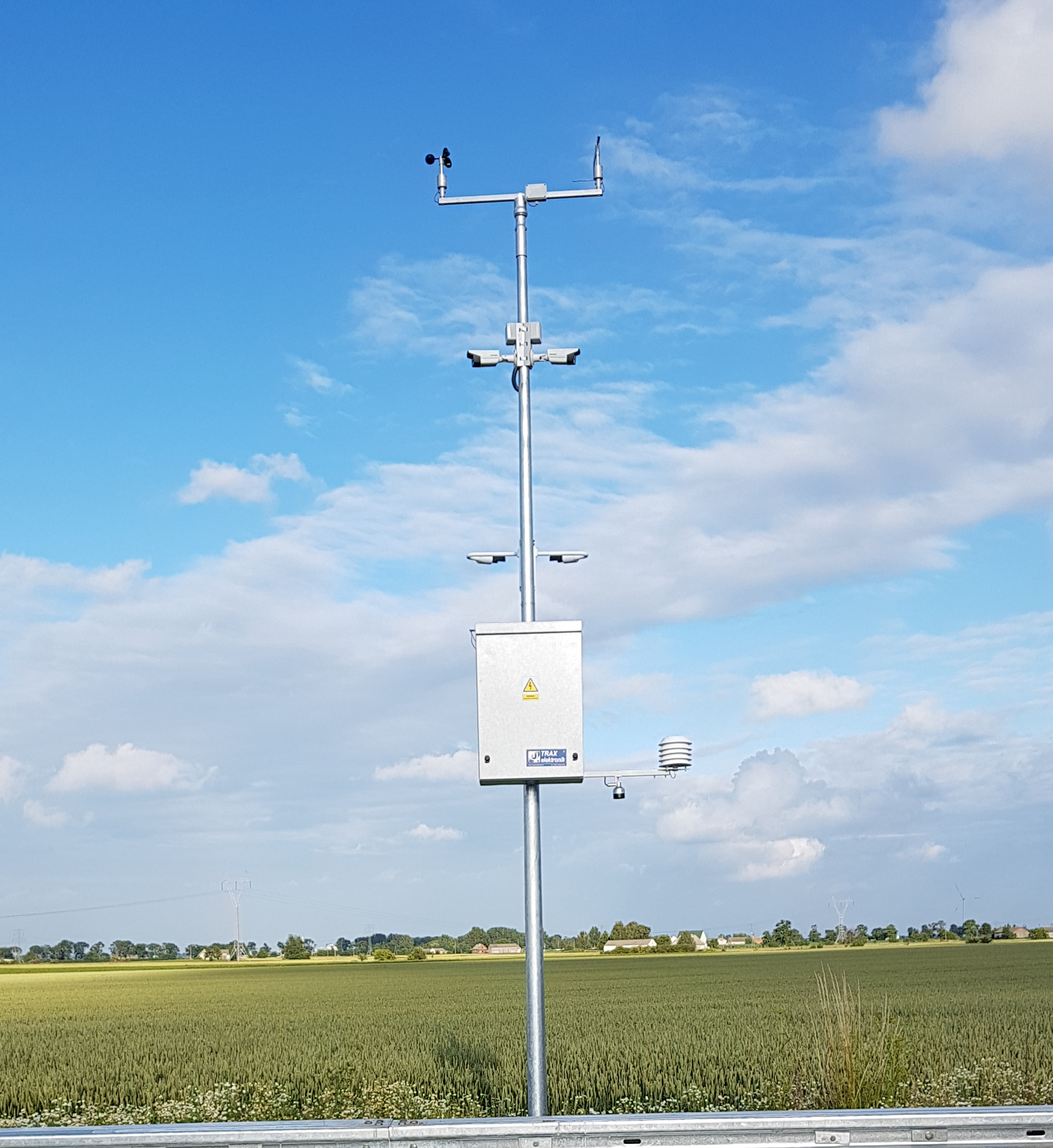 Drogową stację meteorologiczną można wyposażyć w dowolny zestaw czujników pomiarowych takich jak: