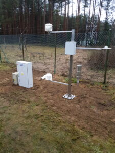 Leśną stację meteorologiczną można wyposażyć w dowolny zestaw czujników pomiarowych takich jak: