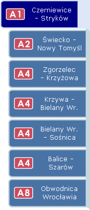 na sześciu odcinkach autostrady A1 od Czerniewic do Strykowa.
